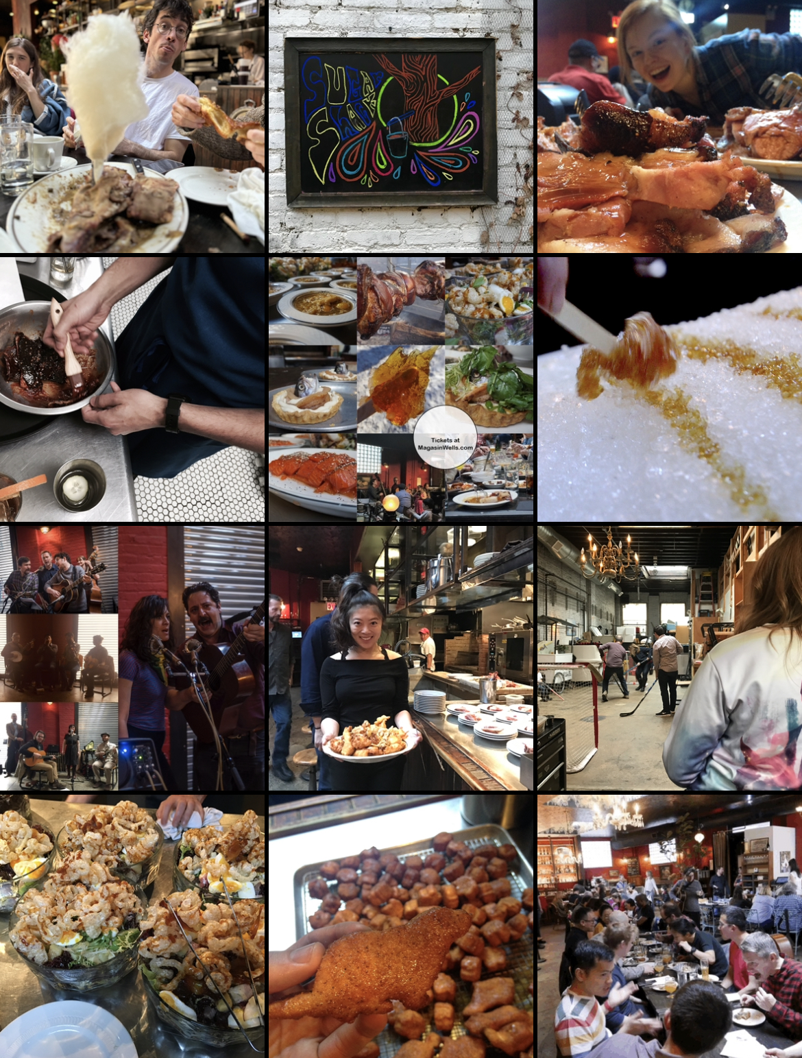 The family-style feasting over platters of glazed ribs, belly baked beans, chicken pastillas, pâté, cured fish, scallops & seafood sausage, aged foie gras in duck and tables covered with all this plus salads, pots of pickles and house bread with wheels of creamy cheese, dope desserts and of course taffy on snow plus an incredible Beverage selection, specialty pours and bowls of punches.